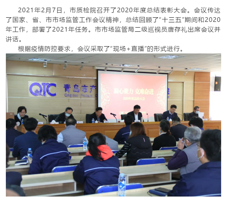 凝心聚力 克難奮進 ——青島質檢院召開2020年度總結表彰大會
