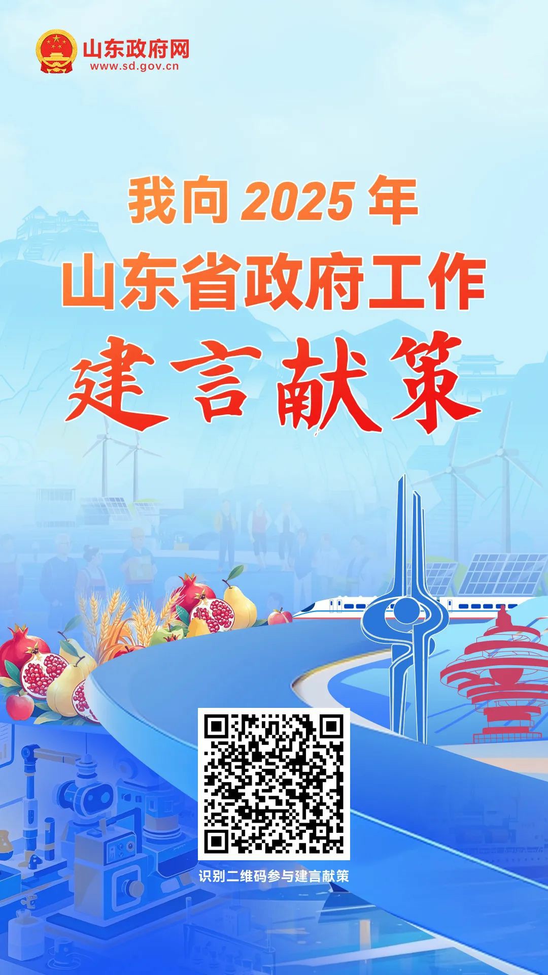 2025年,是“十四五”規劃的收官之年,也是謀劃“十五五”的關鍵之年。隨著山東“兩會時間”的臨近,為更好地傾聽群眾聲音、汲取實踐智慧,山東省人民政府網聯合多家主流媒體平臺發起“我向2025年山東省政府工作建言獻策”活動,旨在通過公開征集社會各界對2025年山東省政府工作的意見建議,為政府決策提供參考,共同推動山東省經濟社會高質量發展。